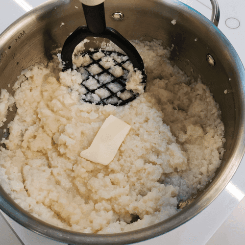 Mash with a masher, adding butter.