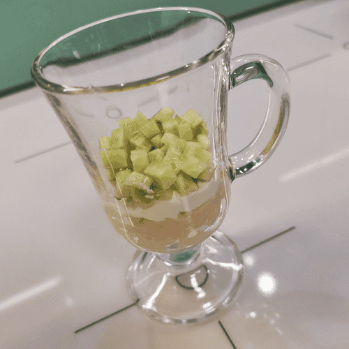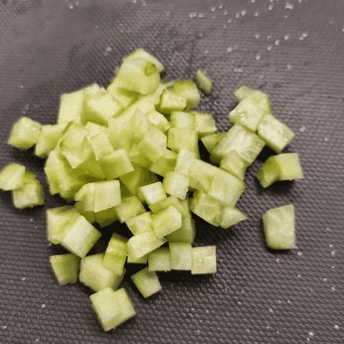Peel the cucumber, cut it into small cubes, and lightly salt.