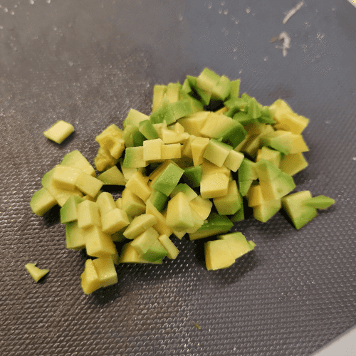Cut the avocado into small cubes.