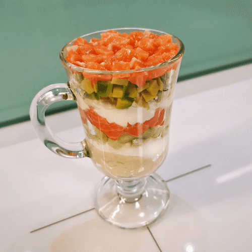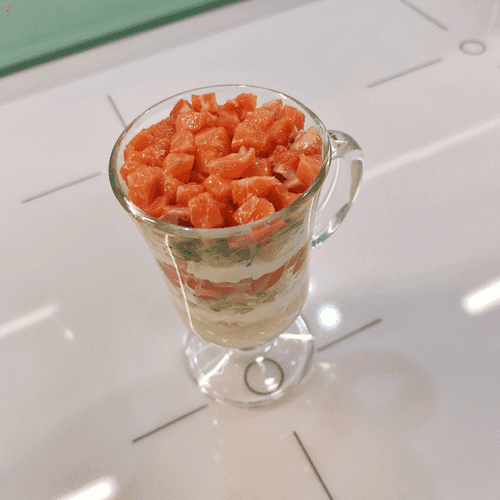Finish the layers with fish.