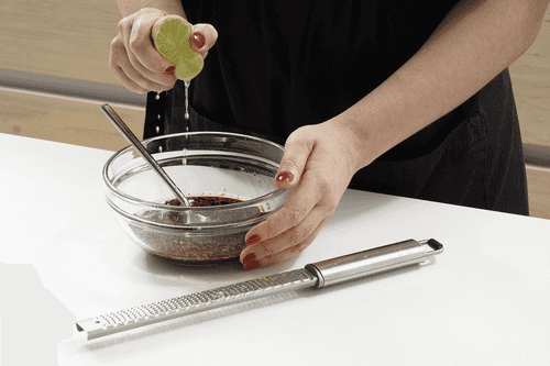 Grate the zest of half a lime with a fine grater and add it to the sauce. Squeeze lime juice into the sauce and mix.