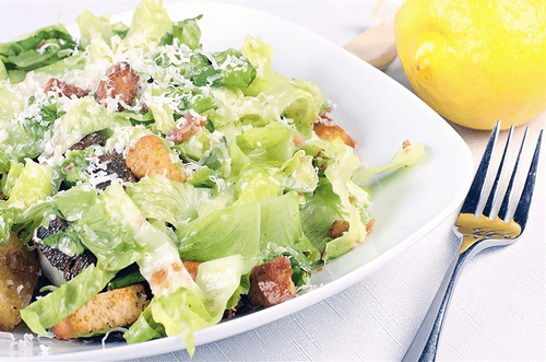 Caesar salad with pork