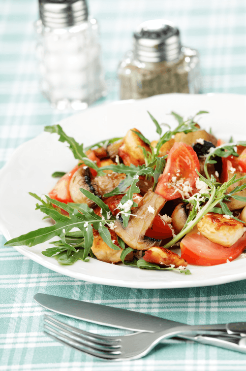 Smoked chicken salad with champignons