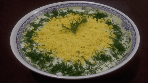 Layered salad 'Royal' is a true decoration of the festive table, embodying the traditions of Russian cuisine. Its delicate texture and harmonious combination of flavors make it a truly royal treat. Boiled potatoes give the salad softness, carrots and radishes add a light sweetness and spiciness, while apples refresh the composition with subtle fruity notes. Eggs add richness to the dish, and mayonnaise unites all ingredients into a cohesive whole, creating a creamy structure. This salad is suitable for both formal receptions and family dinners, delighting with its multilayeredness and richness of flavors. The perfect balance of ingredients turns it into a true gastronomic delight worthy of a royal reception.