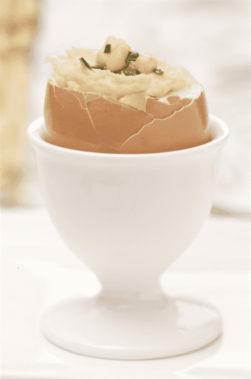 Egg salad is an exquisite and harmonious recipe that combines the tenderness of boiled vegetables, the softness of potatoes, and the sweet freshness of green peas. Homemade mayonnaise gives it a creamy texture and rich flavor, while crumbly yolks add delicacy and lightness. Its roots trace back to Russian culinary traditions where eggs play an important role in festive and everyday dishes. This salad is not only aesthetically pleasing due to its neatly formed portions but also versatile—it is perfect for both festive gatherings and cozy family dinners. Serving it on watercress adds freshness and lightness, creating a balanced dish that delights in taste and appearance.