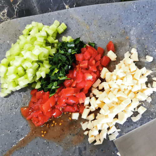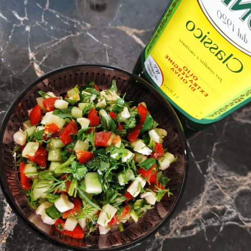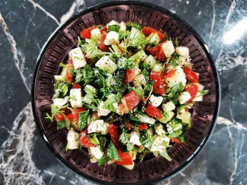 Салат с сыром сулугуни – это яркое отражение кавказской кухни, где свежие ингредиенты гармонично сочетаются, создавая насыщенный, освежающий вкус. Истоки блюда уходят в Грузию, где сулугуни – один из главных сыров национальной гастрономии. В этом рецепте нежная текстура сулугуни дополняется хрустящими огурцами, сочными черри и ароматной зеленью – шпинатом, тархуном и укропом. Горчичное и оливковое масла придают блюду пикантность, а смесь молотых перцев с лимонной цедрой добавляет пряную свежесть. Этот салат – идеальное дополнение к мясным блюдам или самостоятельный легкий ужин, пробуждающий аппетит и раскрывающий богатые вкусовые традиции Кавказа.