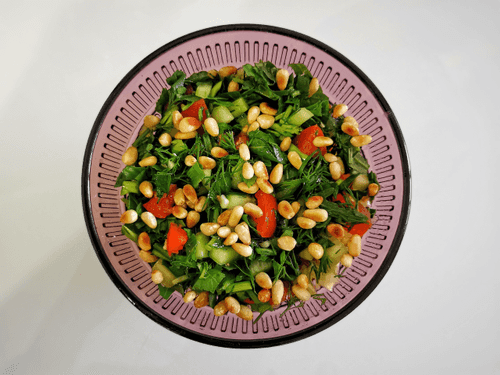 Салат с кедровыми орехами — изысканный и легкий рецепт, вдохновленный европейскими кулинарными традициями. Хрустящие овощи, такие как помидоры черри и свежий огурец, создают сочную основу, а нежные листья шпината, руколы и кресс-салата придают блюду свежесть. Акцентом выступает чеснок, добавляющий пикантность, а морская соль подчеркивает вкусовую гармонию. Кедровые орешки, обжаренные до золотистого оттенка, наполняют салат мягким ореховым вкусом, создавая утонченное сочетание с оливковым маслом extra virgin. Этот салат идеально подходит для легкого ужина или в качестве элегантного дополнения к основным блюдам. Вдохновляющий аромат и сбалансированный вкус делают его универсальным выбором, подходящим как для повседневного питания, так и для праздничных застолий.