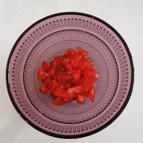 Chop the tomatoes into small pieces. Place them in a deep bowl.