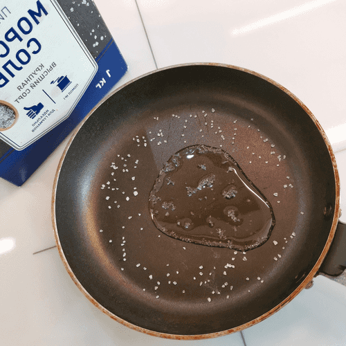 Heat oil in a small pan with a couple of pinches of coarse salt.
