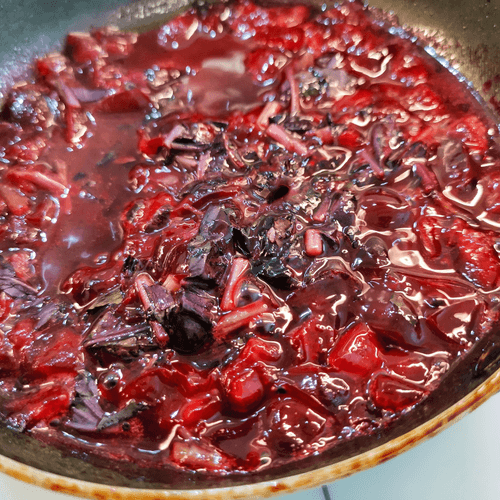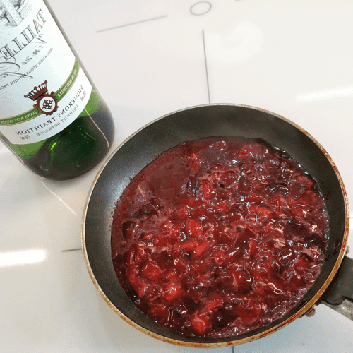 After a couple of minutes, add the wine vinegar, stir, and after another minute, remove from heat.