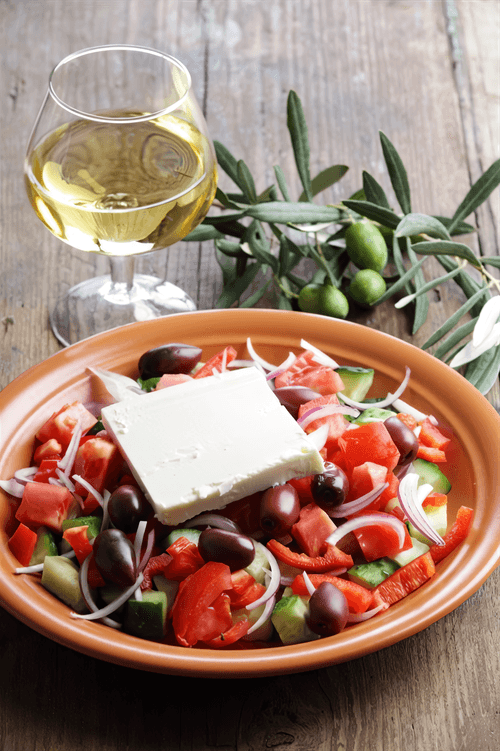 Greek salad with balsamic vinegar is a true embodiment of Mediterranean simplicity and flavor harmony. It originates from traditional Greek cuisine, where fresh vegetables, aromatic olives, and fragrant herbs form the basis of daily dishes. The sweetness of juicy plum tomatoes combines with the mild sharpness of red onion, crunchy cucumbers, and the rich taste of Kalamata olives. Balsamic vinegar adds depth of flavor while olive oil gives tenderness and fullness to each bite. This salad is perfect as a light standalone dish or as a wonderful side to meat or fish. Served in a wide salad bowl and garnished with fresh parsley, it not only pleases the eye but also delights the palate. Its exquisite simplicity makes it indispensable on any table.