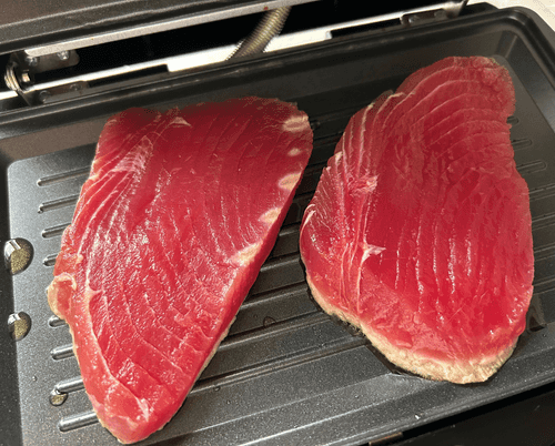 Sear the tuna in a pan or electric grill for 5–7 minutes with the addition of olive oil (10 ml).