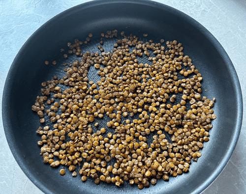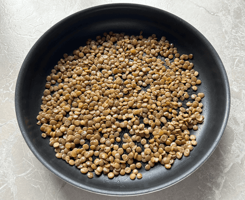 Add olive oil (10 ml) to the cooked lentils and mix.