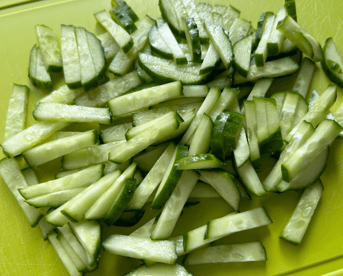 Slice the cucumbers.