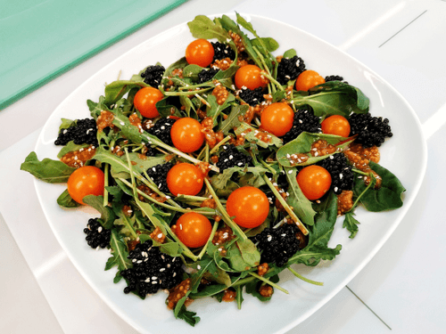 Salad with black caviar