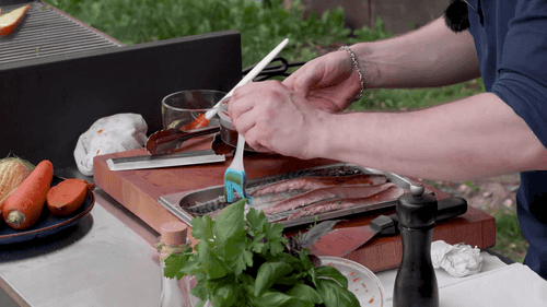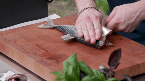 Fillet the mackerel.
