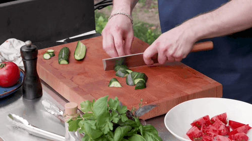 Cut the cucumbers and tomatoes into large pieces.