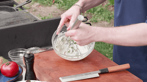Prepare all the ingredients. Light the coals.