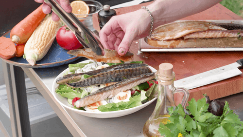 Country salad with grilled mackerel
