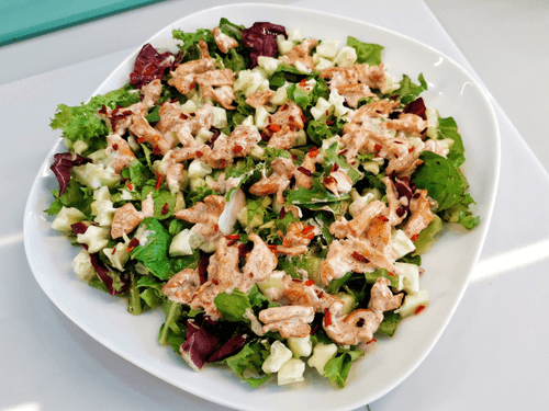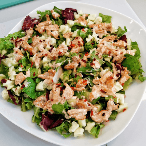 Chanterelle salad is a true symphony of flavors and textures. Tender, aromatic chanterelles lightly sautéed in olive oil and complemented with cream acquire a velvety structure and deep flavor. Crispy romaine and radicchio lettuce leaves bring freshness and a slight bitterness, while juicy cucumbers add a refreshing accent. The dressing made from wine vinegar, garlic, and mayonnaise with nutmeg reveals the composition, giving the dish richness and spiciness. A light heat from chili flakes completes the flavor palette, turning the salad into a gastronomic masterpiece. This recipe embodies author cuisine that combines natural ingredients with an exquisite balance of flavors, perfect for a summer dinner or festive table.