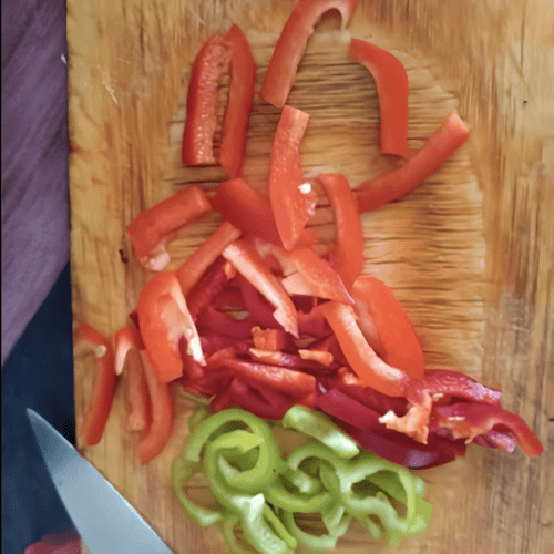 Cut the pepper into strips.