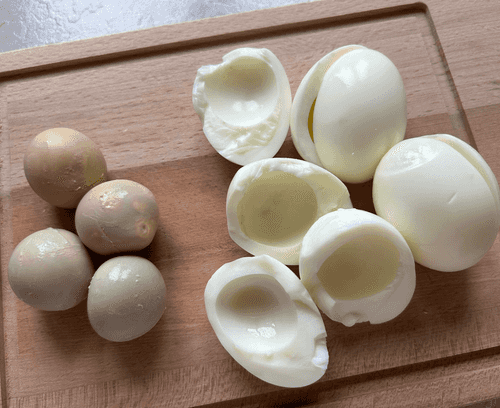 Divide hard-boiled eggs into whites and yolks.