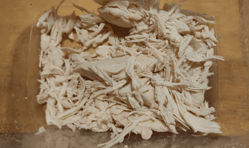 Shred the white meat and set it aside.