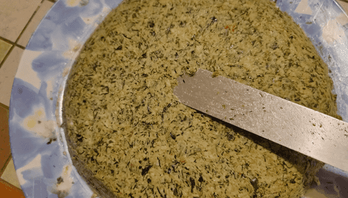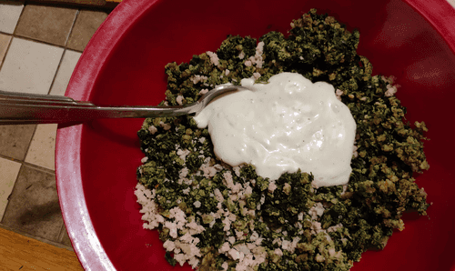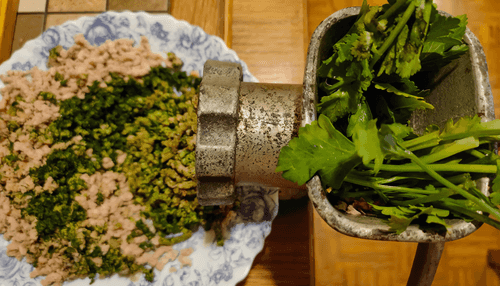 Then, just like the meat, grind a portion of the greens.