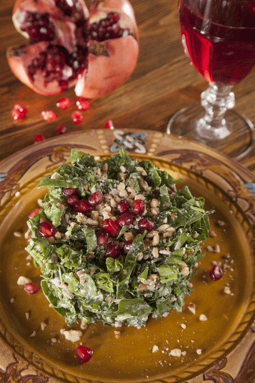 Sprinkle with crushed walnuts and pomegranate seeds.