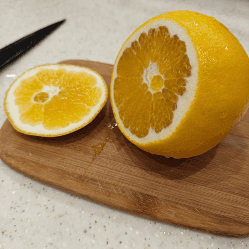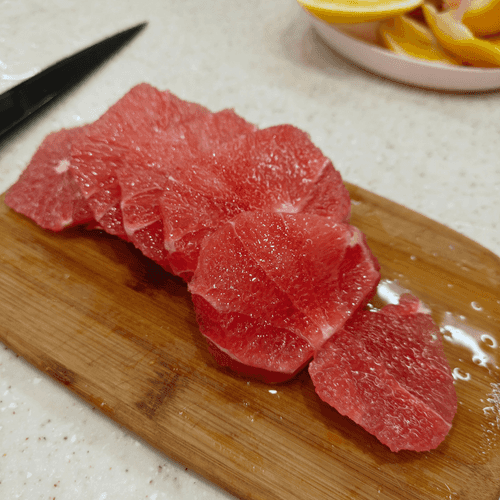 Place the fruit on one of the cut sides to make it as stable as possible. And carefully slice off the peel, again slightly touching the flesh.