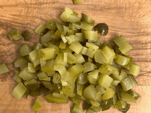 Chop the pickled cucumbers finely.