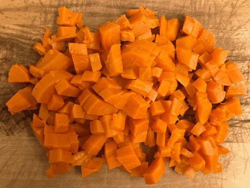 Peel the boiled carrot and chop it finely.