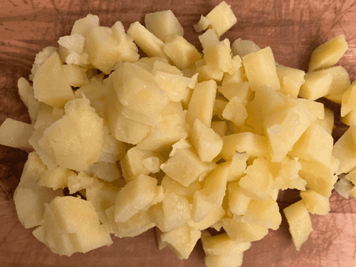 Peel the boiled potatoes and chop them finely.