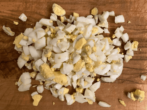 Cool the eggs and chop them finely.