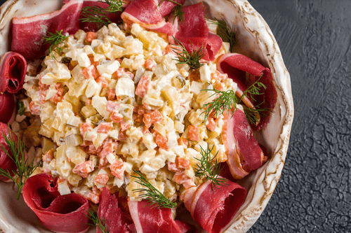 Olivier with duck jamon