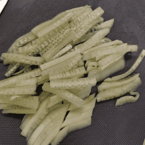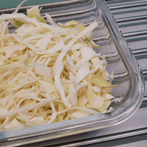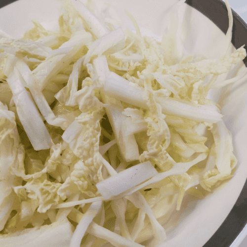 Cut the Beijing cabbage into strips and add it to the vegetables.