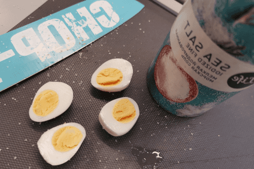 Add eggs to the salad, sprinkle with seeds, and serve.