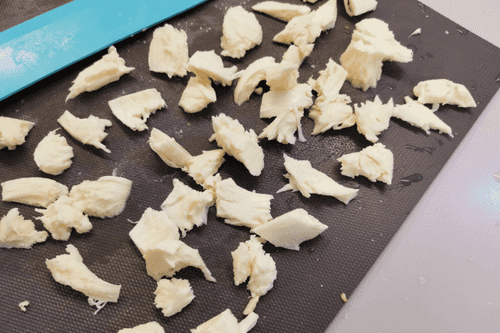 Shred the boiled or fried chicken breast.