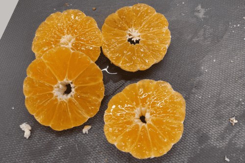 Peel the mandarins and slice them into rings.