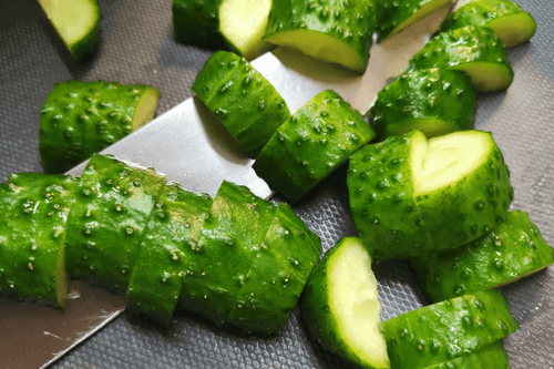 Cut the cucumbers into large pieces.