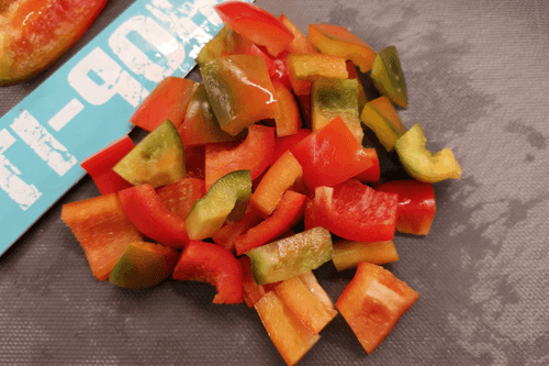 Chop the pepper into small pieces as well.