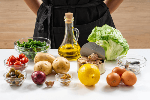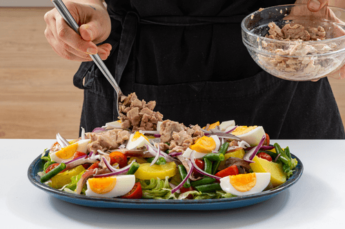 Cod liver salad with potatoes and beans