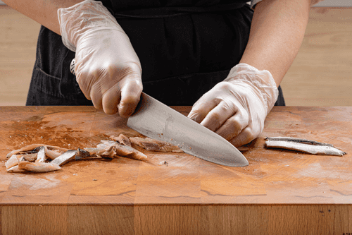 Dry the sprat with a paper towel, fillet it, and cut it if the fish is large.