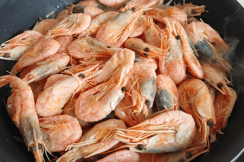 Melt butter in a pan, add garlic, and place the shrimp. Sauté for 7-10 minutes until cooked.