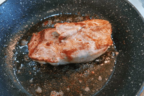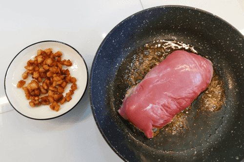 Remove the fried cracklings. Place the fillet in the rendered fat. Fry on high heat for 2-3 minutes.