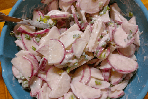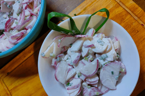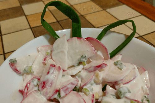 Салат из редиса и зеленого лука со сметаной — это воплощение свежести и простоты русской кухни. Яркий, хрустящий редис придает блюду пикантную остроту, а нежная сметанная заправка смягчает его вкус, создавая гармоничный баланс. Зеленый лук добавляет салату легкую пряность, дополняя свежесть весеннего овощного дуэта. Этот салат традиционно подают как гарнир к мясным и рыбным блюдам, но он также идеально подходит для легкого перекуса или летнего застолья. Простота приготовления делает его доступным для каждого, а сочетание ингредиентов пробуждает аппетит и дарит ощущение легкости. Салат особенно актуален весной и летом, когда редис и лук обладают максимальной сочностью и ароматом. Отличный выбор для тех, кто ценит вкусные и полезные блюда!