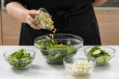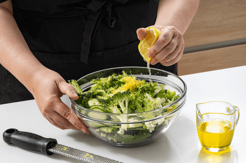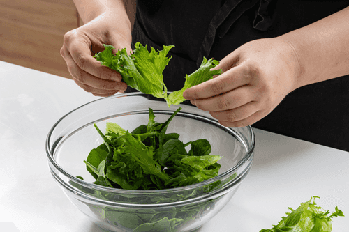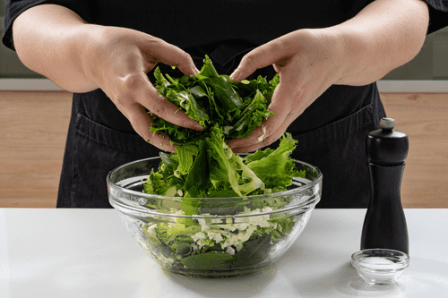 Gently mix with clean hands to avoid crushing the greens. Add salt and pepper to taste.