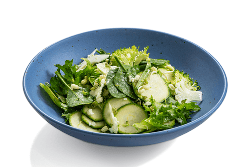 Mung bean sprout salad is a true embodiment of freshness and lightness. Its base is young mung bean sprouts rich in protein and vitamins that give the dish a subtle nutty flavor. Broccoli and cauliflower add crunchiness and rich taste, while tender leaves of spinach, sorrel, and frisée lettuce bring in tangy notes. Zucchini adds juiciness, while lemon juice and unrefined sunflower oil enhance the aroma of the ingredients, creating a harmony of flavors. This salad is not just a table decoration but also a true treasure trove of benefits—rich in antioxidants, it refreshes and energizes. It is ideal as a standalone dish or as an accompaniment to a light dinner and pairs well with fish and white meat. Served immediately after preparation to preserve the freshness and texture of each component.