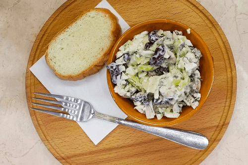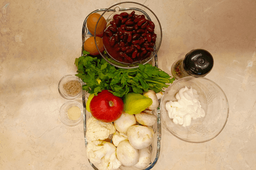 Этот салат из цветной капусты с шампиньонами и фасолью – легкое и питательное блюдо европейской кухни, которое объединяет свежесть овощей с мягкостью грибов и насыщенным вкусом фасоли. Цветная капуста придает салату нежность, грибы добавляют утонченную текстуру, а сладкий перец и яблоко создают легкую кисло-сладкую нотку. Заправка на основе майонеза и лимонного сока гармонично связывает все компоненты, а петрушка привносит свежий аромат. Этот салат прекрасно подходит как самостоятельное блюдо или как дополнение к мясным и рыбным блюдам. Идеален для легкого обеда или ужина, а подача с тостами из белого хлеба добавляет хрустящую текстуру. Благодаря сбалансированному сочетанию ингредиентов, он не только вкусный, но и полезный.