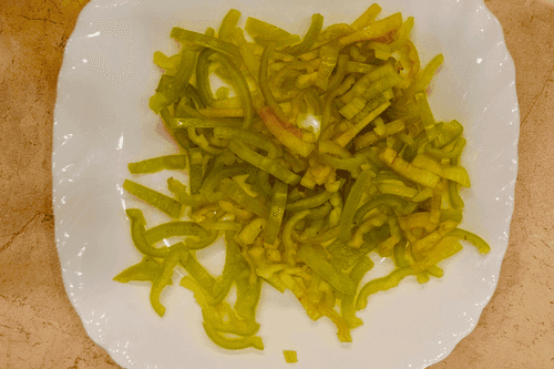 Wash the pepper, remove the core and seeds, and cut into thin strips.